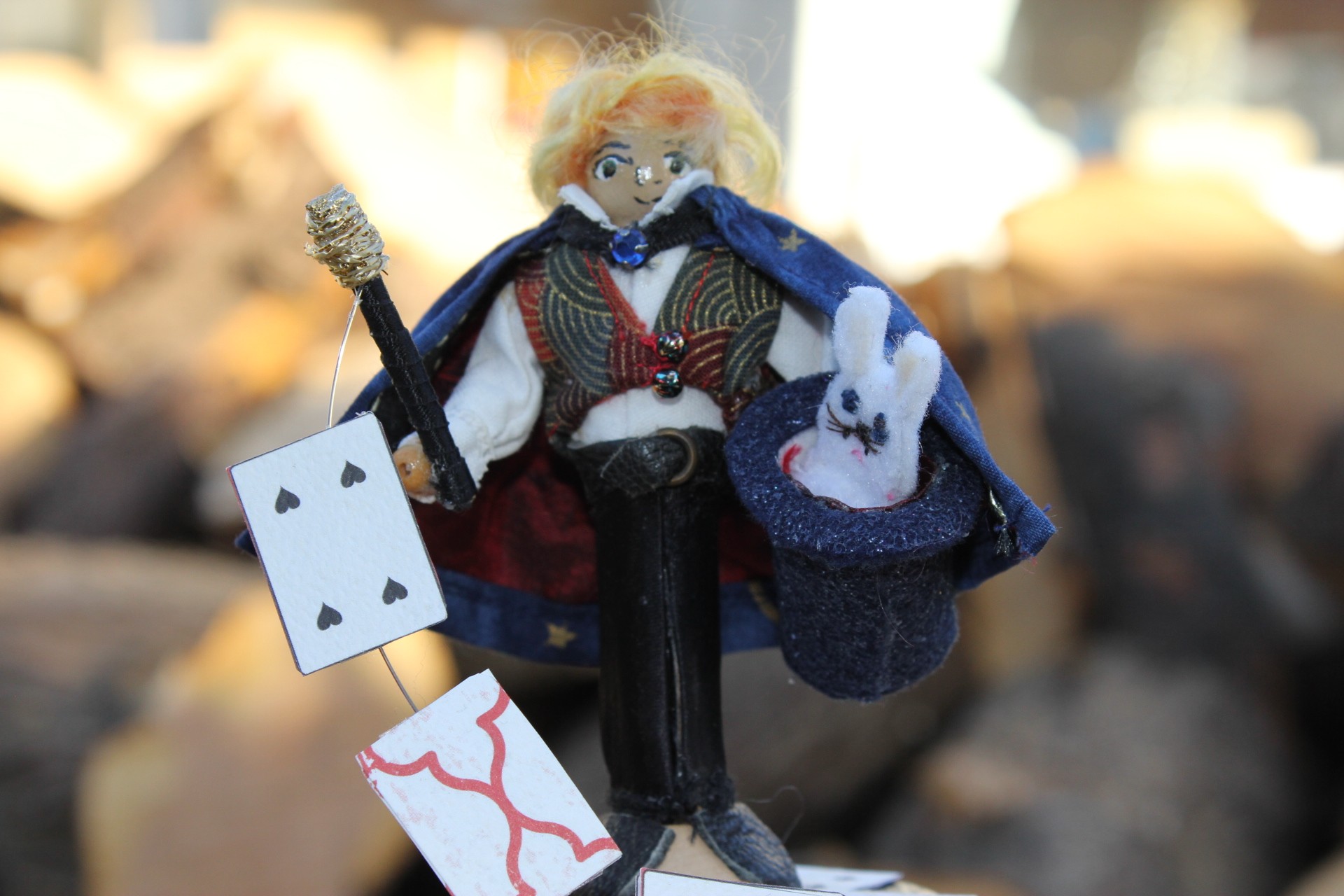 "Ronelli the Amazing" is a marvel of illusion and trickery. He can produce a rabbit right out of a hat while simultaneously making cards float in the air. He stands atop a box which could be used to store your magical trinkets and charms.